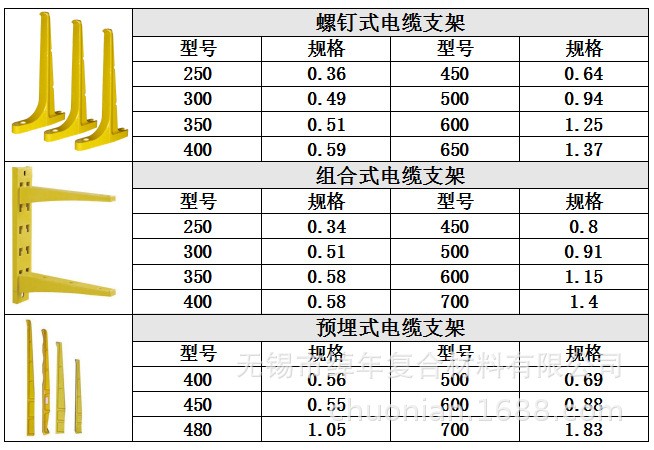 特点:玻璃钢螺钉式电缆支架其比重轻、抗腐蚀、耐老化、密封性能好,安全美观,有着优异的  玻璃钢螺钉式电缆支架是由合成树脂为粘结剂,玻璃纤维及其制品作增强材料而制成的复合材料,具有较高的机械性能和介点性能,并且按照不同模具可以制成各种大小和形状满足用户不同需要。